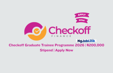 April 21, 2026Uncategorized 0 Comments Checkoff Graduate Trainee Programme 2026 | ₦200,000 Stipend | Apply NowCheckoff Finance is inviting applications for its Checkoff Graduate Trainee Programme 2026. This 6-month ... Read More