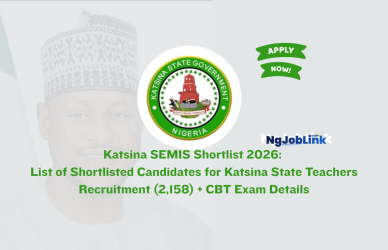 April 21, 2026Recruitment 0 Comments Katsina SEMIS Shortlist 2026: List of Shortlisted Candidates for Katsina State Teachers Recruitment (2,158) + CBT Exam DetailsThe Katsina State teachers shortlist for the recruitment of 2,158 teachers is now available online. Candidates who ... Read More